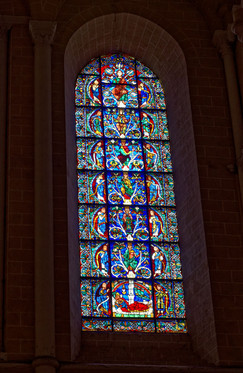 Après ces premières explications, nous entrons dans la cathédrale et notre guide débute ses explications sur les merveilleux vitraux, vrais chefs-d'oeuvre de l'art médiéval. Nous apprécions à nouveau ces explications de "texte" avec la lecture biblique associée.