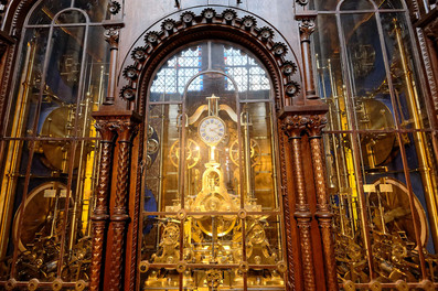 Un horloge astronomique du XIXéme siècle côtoie une horloge médiévale. A noté que l'accès au choeur était fermé suite à la chute de pierres de la voute.