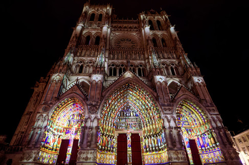 Après une pause au camping en attendant la tombée de la nuit nous retournons dans le centre d'Amiens pour assister à l'illumination de la cathédrale.