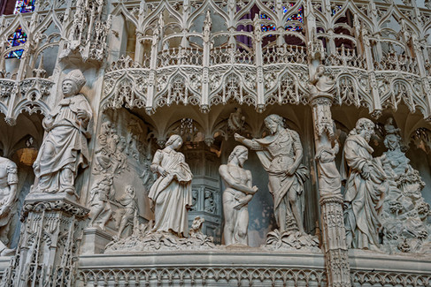 Ensuite nous nous dirigeons vers la cathédrale Saint Pierre. Dans les dernières construites, ses maîtres d'ouvrage l'ont voulu la plus haute. Ainsi la hauteur à l'intérieur du choeur dépasse les 48m, le plaçant en tête de tous les édifices gothiques de la Chrétienté. Malheureusement des effondrements, des guerres, des épidémies et des difficultés financières au cours des siècles ont conduits à l'arrêt de la construction de la nef. Le transept fut lui terminé en 1548 avec une largeur de 58m.