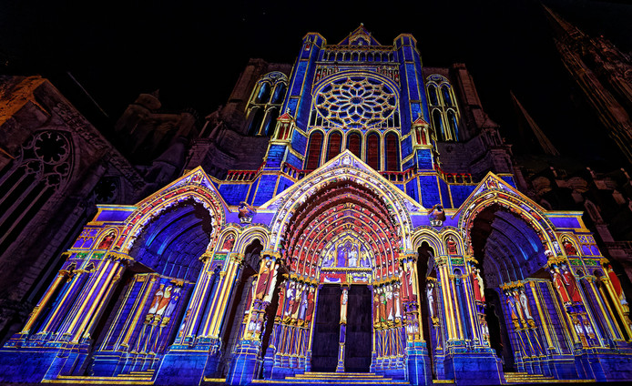 A la nuit tombée, les monuments de Chartes sont illuminés. Nous revenons à la cathédrale pour l'admirer sous un nouvel angle.